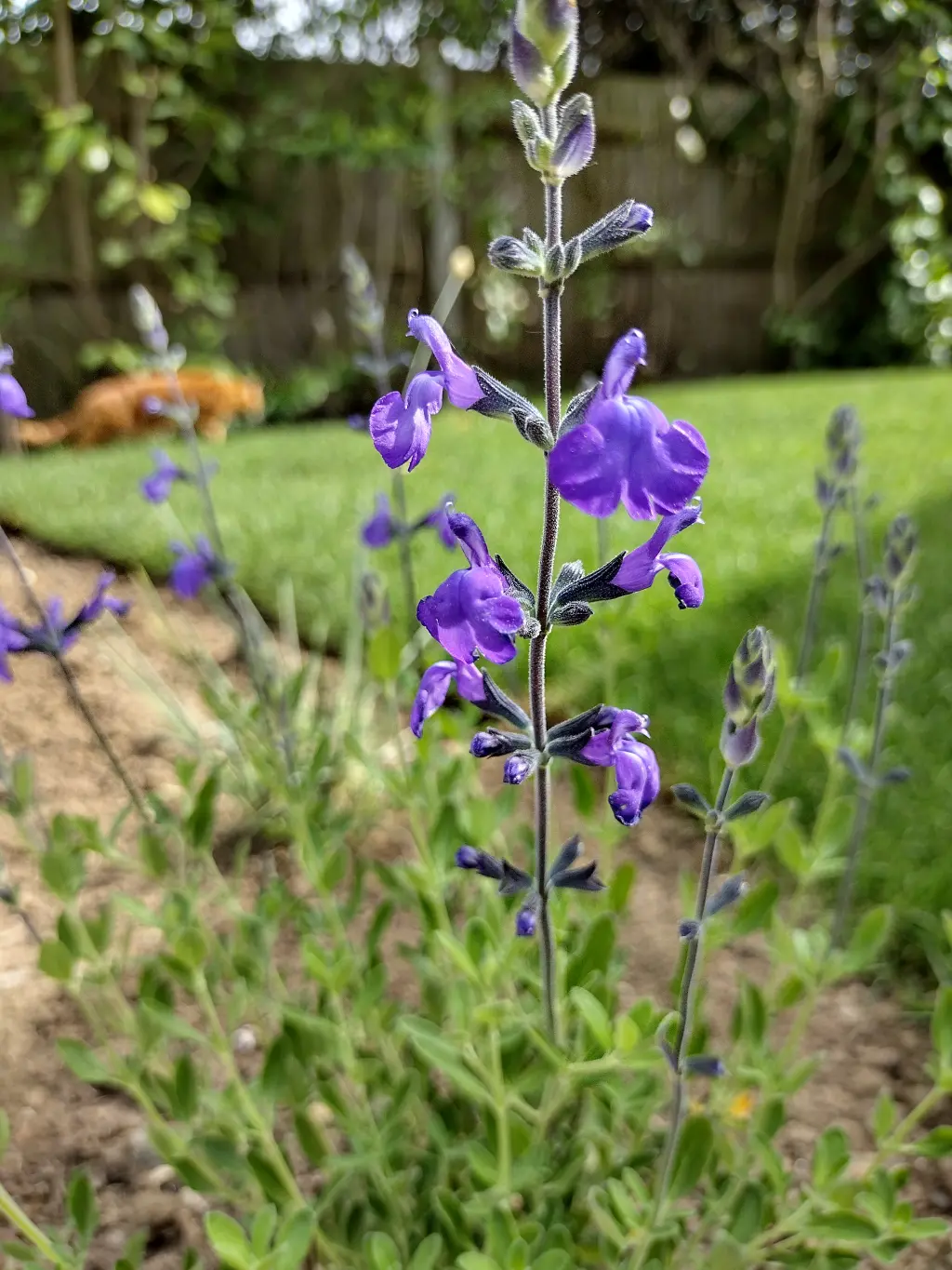 Blue grasses and dogwoods were chosen for their strong winter presence, providing structure and seasonal color with their distinctive stems. Cool blue tones worked well with orange and purple from long-flowering Salvia ‘Blue Note,’ which also attracted pollinating insects. Salvia ‘Blue Note’ ensured lasting colour through the seasons while supporting biodiversity, adding both function and visual appeal to the garden.